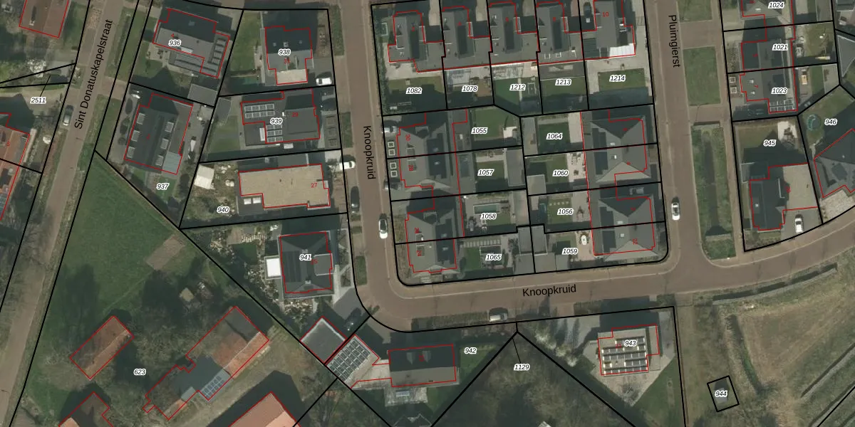 Gebruik de zoekbalk of klik op een perceel voor informatie over de adressen binnen dit perceel.