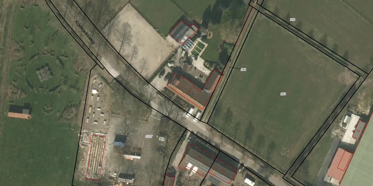 Het perceel waarop Koekoeksweg 5 staat heeft een oppervlakte van 8096 m². Dit is een zeer groot perceel. De perceeloppervlakte wordt geregistreerd door het Kadaster. Gedetailleerde informatie over de maten van dit perceel kunt u vinden in het rapport Kadastrale kaart met maatvoering van Koekoeksweg 5.