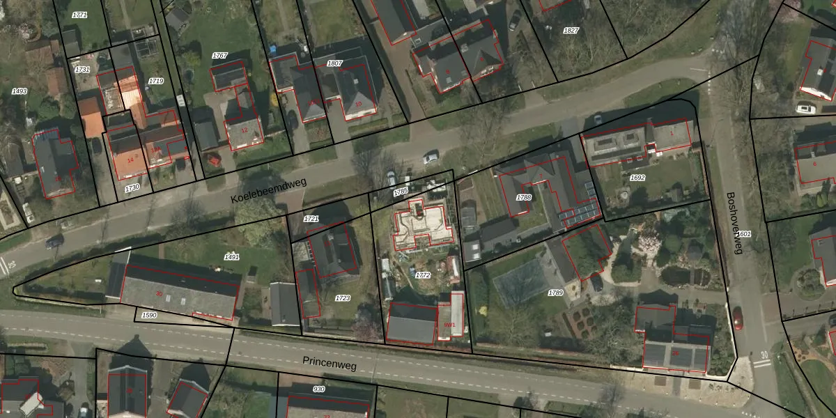 Het perceel waarop Koelebeemdweg 9 staat heeft een oppervlakte van 755 m². Dit is een groot perceel. De perceeloppervlakte wordt geregistreerd door het Kadaster. Gedetailleerde informatie over de maten van dit perceel kunt u vinden in het rapport Kadastrale kaart met maatvoering van Koelebeemdweg 9.