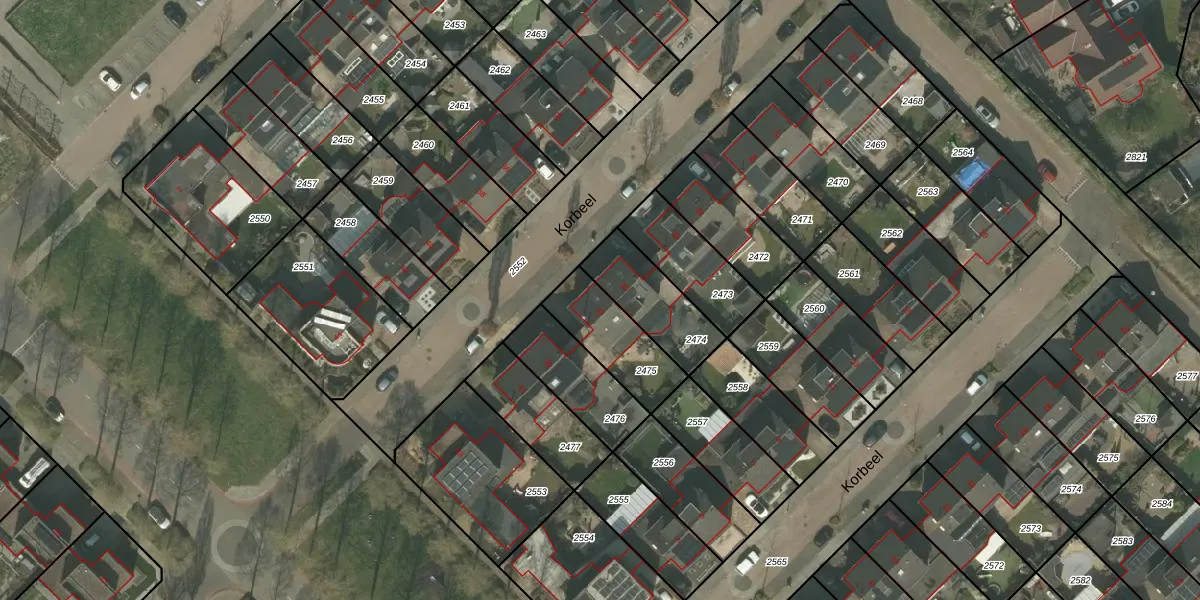 Het perceel waarop Korbeel 37 staat heeft een oppervlakte van 234 m². Dit is een middelgroot perceel. De perceeloppervlakte wordt geregistreerd door het Kadaster. Gedetailleerde informatie over de maten van dit perceel kunt u vinden in het rapport Kadastrale kaart met maatvoering van Korbeel 37.
