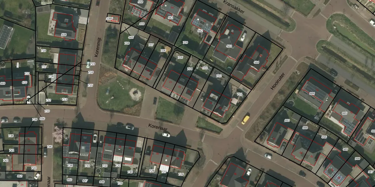 Het perceel waarop Korenaar 21 staat heeft een oppervlakte van 217 m². Dit is een middelgroot perceel. De perceeloppervlakte wordt geregistreerd door het Kadaster. Gedetailleerde informatie over de maten van dit perceel kunt u vinden in het rapport Kadastrale kaart met maatvoering van Korenaar 21.
