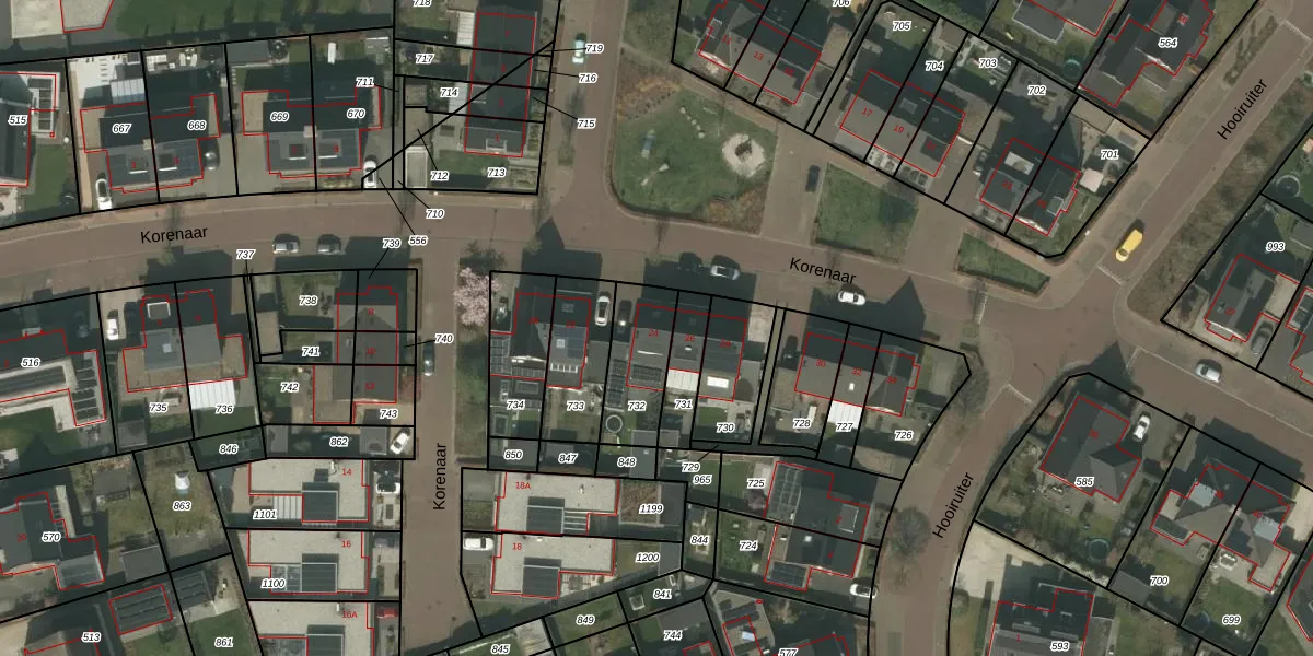 Het perceel waarop Korenaar 24 staat heeft een oppervlakte van 223 m². Dit is een middelgroot perceel. De perceeloppervlakte wordt geregistreerd door het Kadaster. Gedetailleerde informatie over de maten van dit perceel kunt u vinden in het rapport Kadastrale kaart met maatvoering van Korenaar 24.