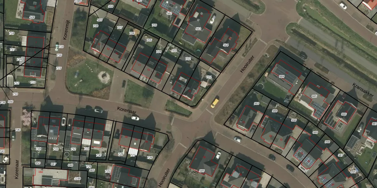 Het perceel waarop Korenaar 25 staat heeft een oppervlakte van 260 m². Dit is een middelgroot perceel. De perceeloppervlakte wordt geregistreerd door het Kadaster. Gedetailleerde informatie over de maten van dit perceel kunt u vinden in het rapport Kadastrale kaart met maatvoering van Korenaar 25.