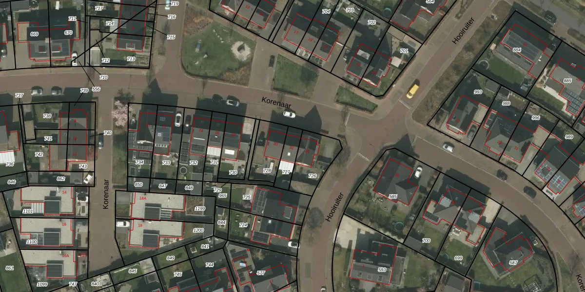 Het perceel waarop Korenaar 32 staat heeft een oppervlakte van 110 m². Dit is een middelgroot perceel. De perceeloppervlakte wordt geregistreerd door het Kadaster. Gedetailleerde informatie over de maten van dit perceel kunt u vinden in het rapport Kadastrale kaart met maatvoering van Korenaar 32.
