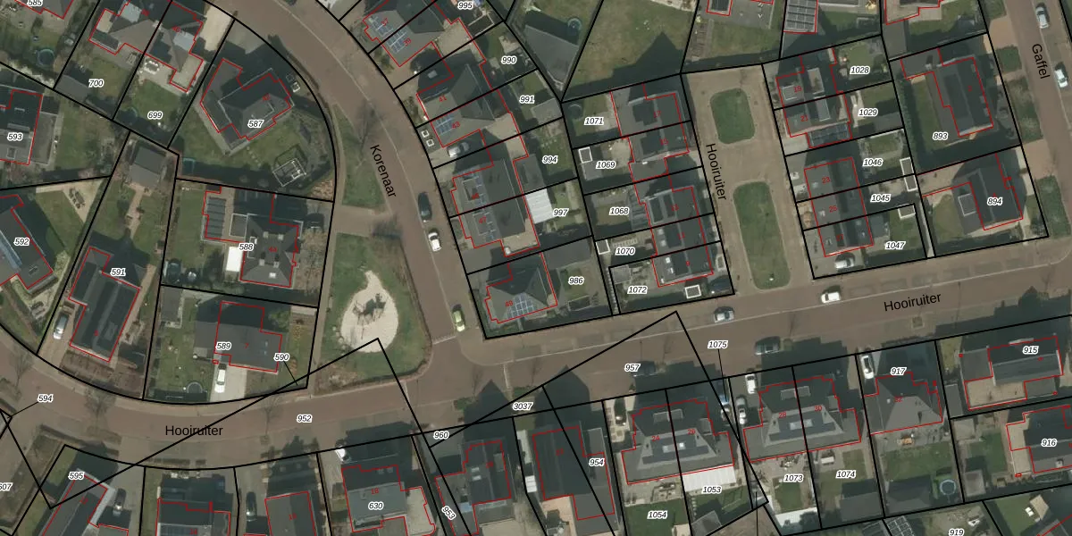 Het perceel waarop Korenaar 49 staat heeft een oppervlakte van 339 m². Dit is een groot perceel. De perceeloppervlakte wordt geregistreerd door het Kadaster. Gedetailleerde informatie over de maten van dit perceel kunt u vinden in het rapport Kadastrale kaart met maatvoering van Korenaar 49.
