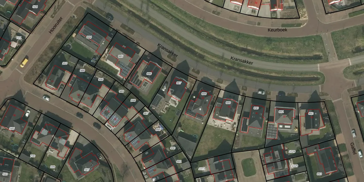 Gebruik de zoekbalk of klik op een perceel voor informatie over de adressen binnen dit perceel.