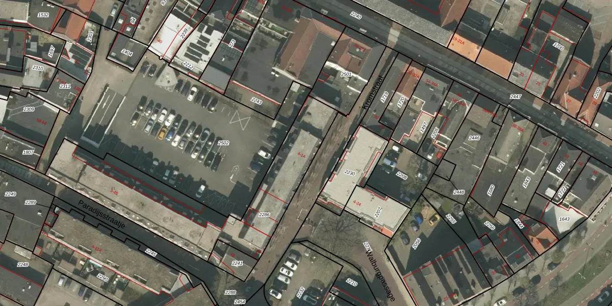 Het perceel waarop Kromstraat 14 staat heeft een oppervlakte van 1570 m². Dit is een zeer groot perceel. De perceeloppervlakte wordt geregistreerd door het Kadaster. Gedetailleerde informatie over de maten van dit perceel kunt u vinden in het rapport Kadastrale kaart met maatvoering van Kromstraat 14.