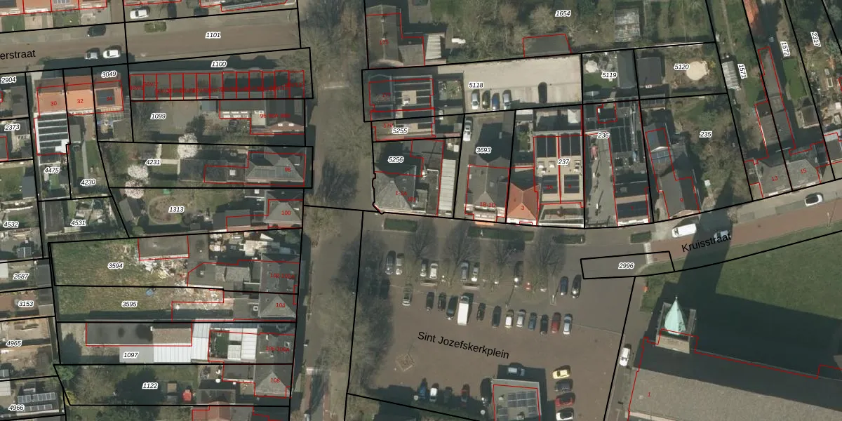 Het perceel waarop Kruisstraat 1-A staat heeft een oppervlakte van 355 m². Dit is een groot perceel. De perceeloppervlakte wordt geregistreerd door het Kadaster. Gedetailleerde informatie over de maten van dit perceel kunt u vinden in het rapport Kadastrale kaart met maatvoering van Kruisstraat 1-A.
