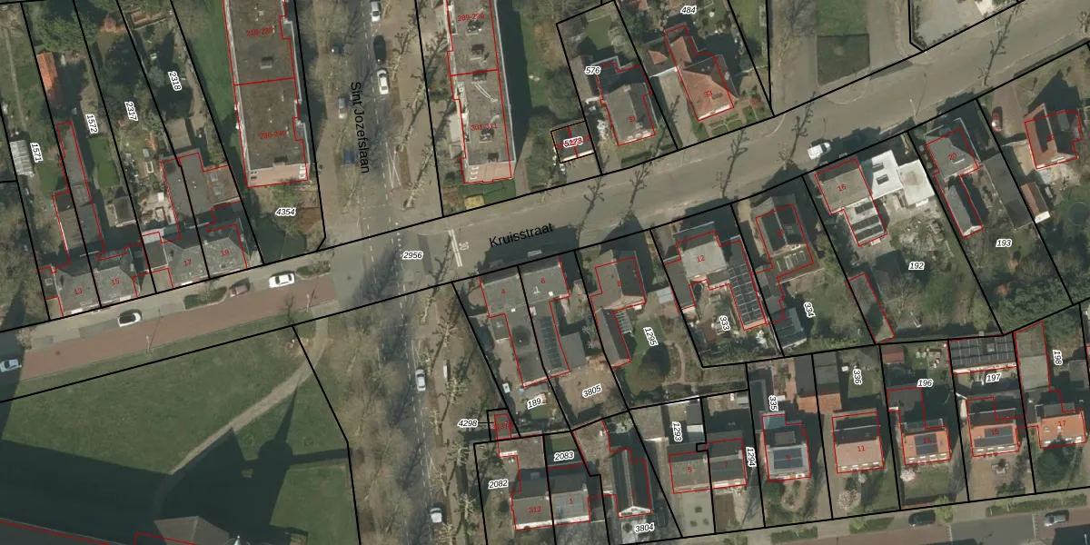 Het perceel waarop Kruisstraat 6 staat heeft een oppervlakte van 348 m². Dit is een groot perceel. De perceeloppervlakte wordt geregistreerd door het Kadaster. Gedetailleerde informatie over de maten van dit perceel kunt u vinden in het rapport Kadastrale kaart met maatvoering van Kruisstraat 6.