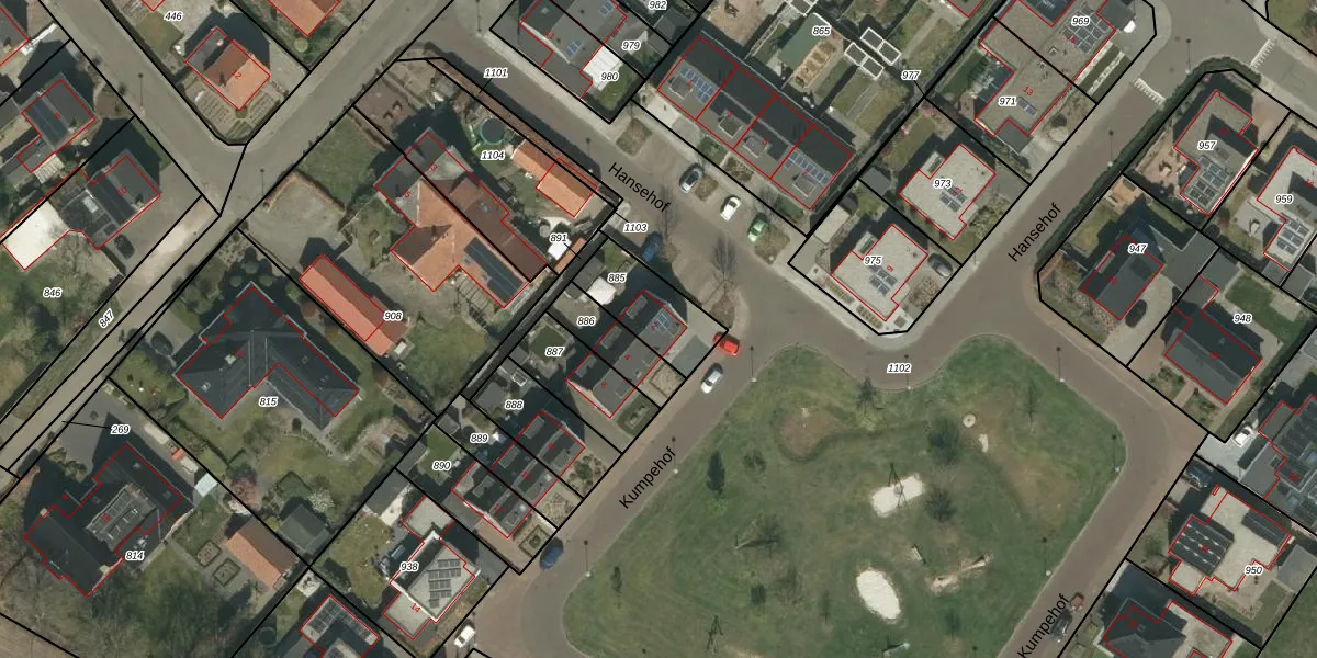 Gebruik de zoekbalk of klik op een perceel voor informatie over de adressen binnen dit perceel.