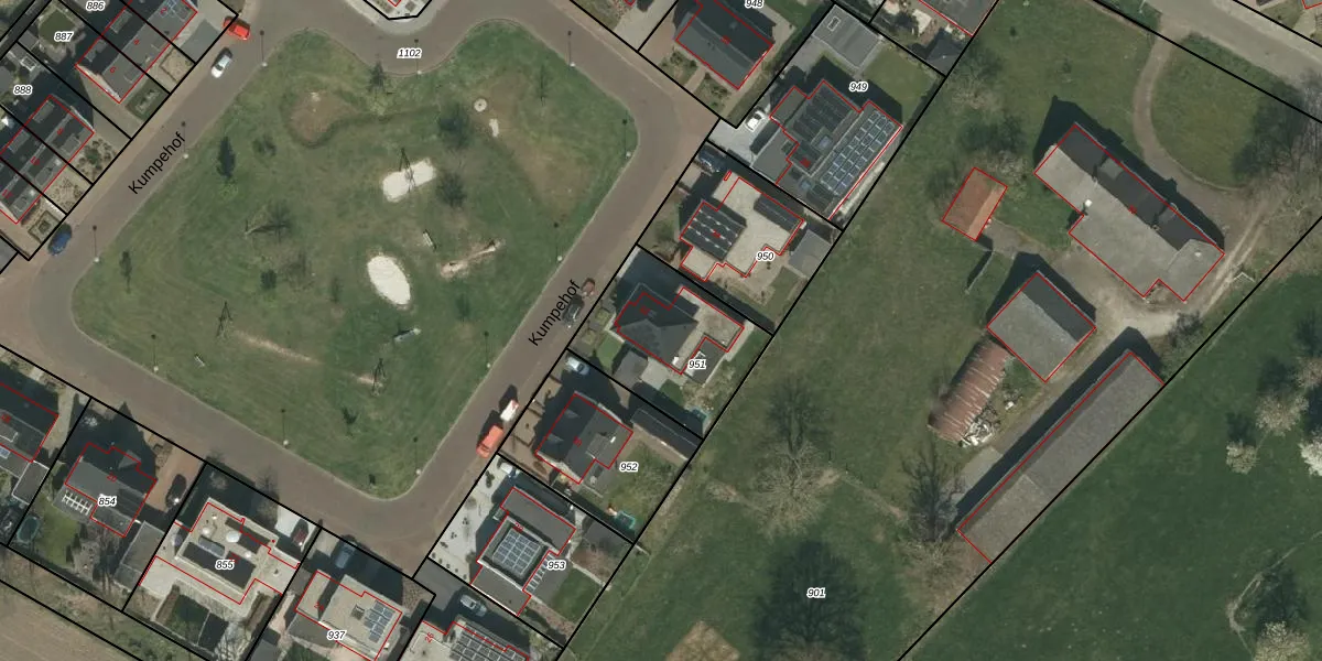 Het perceel waarop Kumpehof 32 staat heeft een oppervlakte van 475 m². Dit is een groot perceel. De perceeloppervlakte wordt geregistreerd door het Kadaster. Gedetailleerde informatie over de maten van dit perceel kunt u vinden in het rapport Kadastrale kaart met maatvoering van Kumpehof 32.