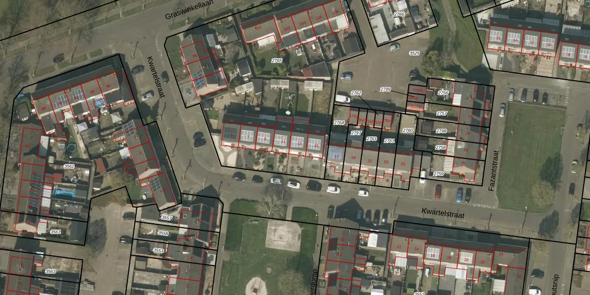 Het perceel waarop Kwartelstraat 13 staat heeft een oppervlakte van 2893 m². Dit is een zeer groot perceel. De perceeloppervlakte wordt geregistreerd door het Kadaster. Gedetailleerde informatie over de maten van dit perceel kunt u vinden in het rapport Kadastrale kaart met maatvoering van Kwartelstraat 13.
