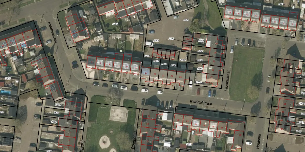 Kwartelstraat 19 is gelegen op kadastraal perceel WEE01F2797. Deze kadastrale aanduiding is uniek en wordt gebruikt door het Kadaster om eigendomsrechten en andere zakelijke rechten vast te leggen. Het perceel maakt onderdeel uit van de kadastrale gemeente Weert.