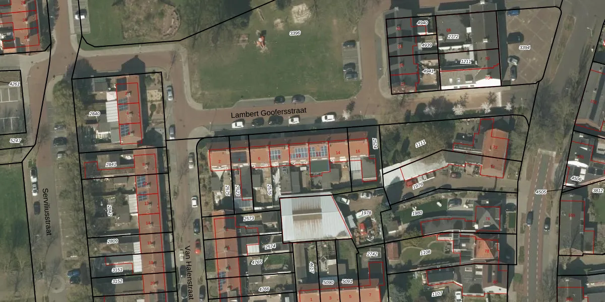 Het perceel waarop Lambert Goofersstraat 10 staat heeft een oppervlakte van 742 m². Dit is een groot perceel. De perceeloppervlakte wordt geregistreerd door het Kadaster. Gedetailleerde informatie over de maten van dit perceel kunt u vinden in het rapport Kadastrale kaart met maatvoering van Lambert Goofersstraat 10.