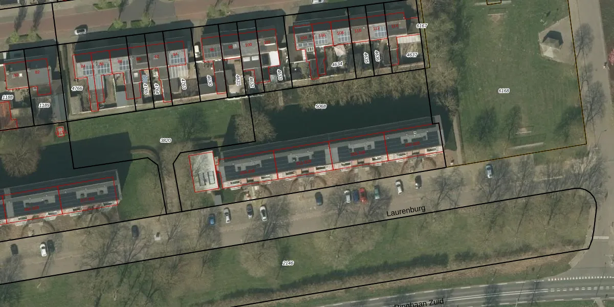 Het perceel waarop Laurenburg 221 staat heeft een oppervlakte van 2505 m². Dit is een zeer groot perceel. De perceeloppervlakte wordt geregistreerd door het Kadaster. Gedetailleerde informatie over de maten van dit perceel kunt u vinden in het rapport Kadastrale kaart met maatvoering van Laurenburg 221.