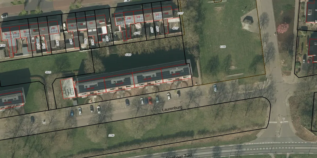Het perceel waarop Laurenburg 233 staat heeft een oppervlakte van 2505 m². Dit is een zeer groot perceel. De perceeloppervlakte wordt geregistreerd door het Kadaster. Gedetailleerde informatie over de maten van dit perceel kunt u vinden in het rapport Kadastrale kaart met maatvoering van Laurenburg 233.