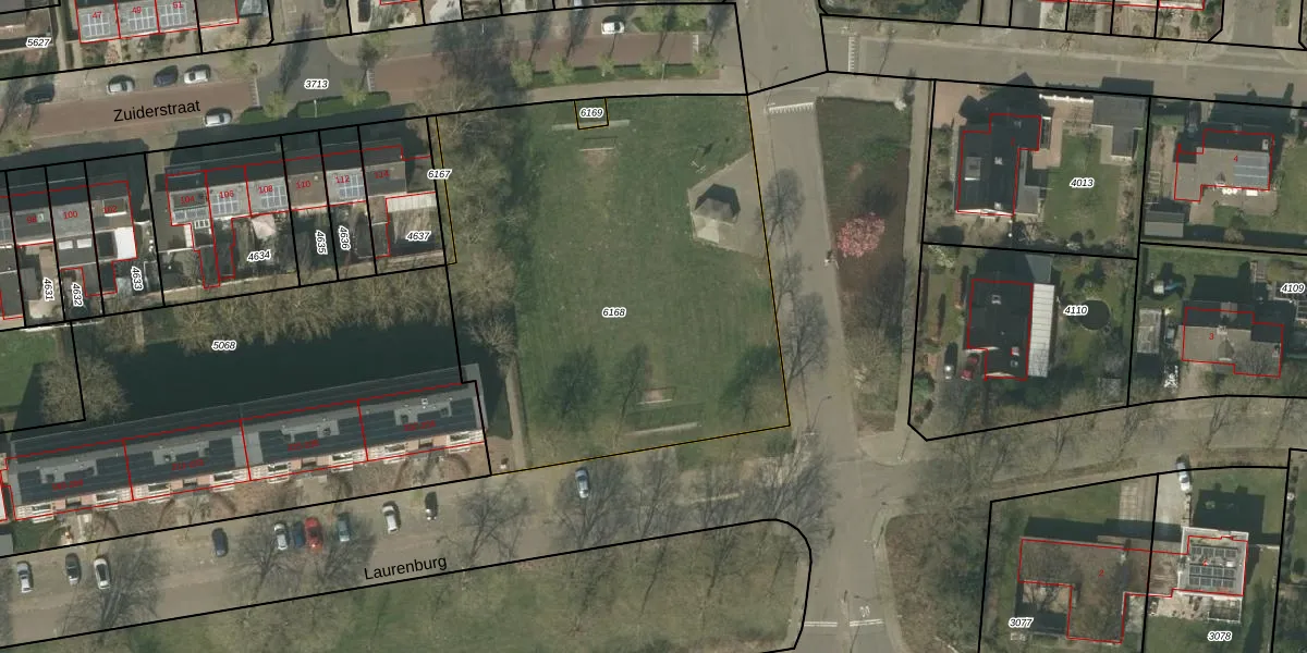 Het perceel waarop Laurenburg 285 staat heeft een oppervlakte van 2566 m². Dit is een zeer groot perceel. De perceeloppervlakte wordt geregistreerd door het Kadaster. Gedetailleerde informatie over de maten van dit perceel kunt u vinden in het rapport Kadastrale kaart met maatvoering van Laurenburg 285.