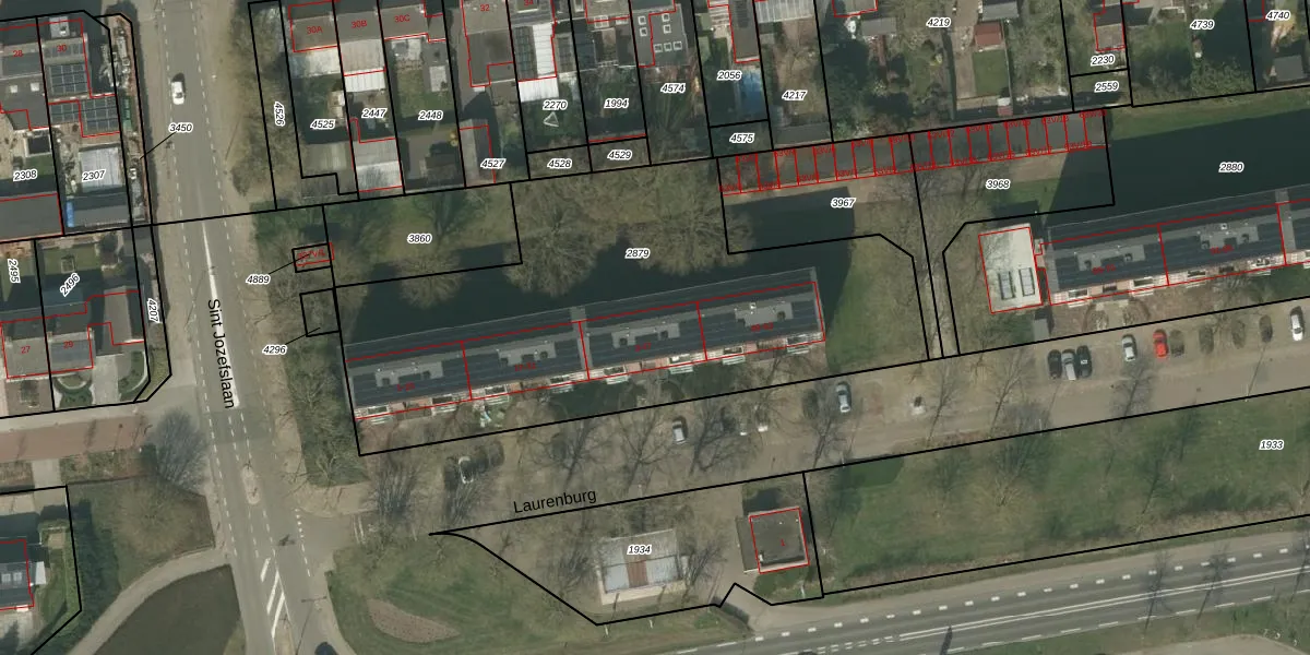 Het perceel waarop Laurenburg 43 staat heeft een oppervlakte van 2485 m². Dit is een zeer groot perceel. De perceeloppervlakte wordt geregistreerd door het Kadaster. Gedetailleerde informatie over de maten van dit perceel kunt u vinden in het rapport Kadastrale kaart met maatvoering van Laurenburg 43.
