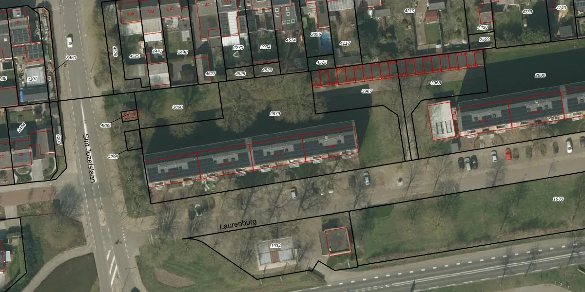 Het perceel waarop Laurenburg 47 staat heeft een oppervlakte van 2485 m². Dit is een zeer groot perceel. De perceeloppervlakte wordt geregistreerd door het Kadaster. Gedetailleerde informatie over de maten van dit perceel kunt u vinden in het rapport Kadastrale kaart met maatvoering van Laurenburg 47.