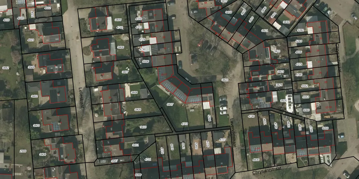 Lavendelstraat 9 is gelegen op kadastraal perceel WEE01N5937. Deze kadastrale aanduiding is uniek en wordt gebruikt door het Kadaster om eigendomsrechten en andere zakelijke rechten vast te leggen. Het perceel maakt onderdeel uit van de kadastrale gemeente Weert.