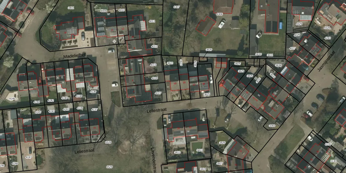 Gebruik de zoekbalk of klik op een perceel voor informatie over de adressen binnen dit perceel.