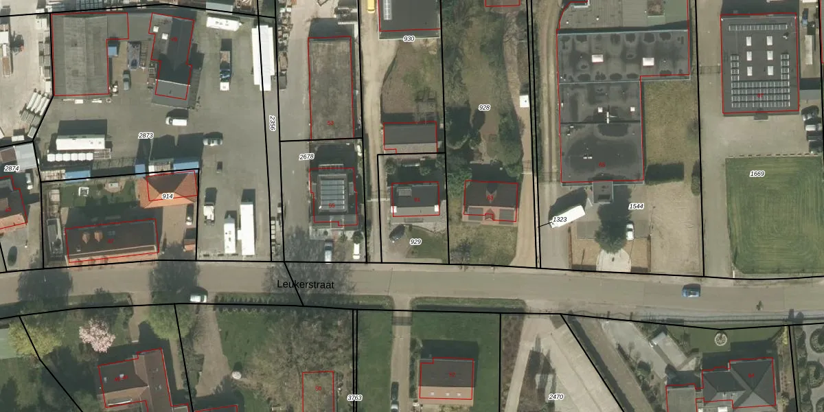 Het perceel waarop Leukerstraat 61 staat heeft een oppervlakte van 430 m². Dit is een groot perceel. De perceeloppervlakte wordt geregistreerd door het Kadaster. Gedetailleerde informatie over de maten van dit perceel kunt u vinden in het rapport Kadastrale kaart met maatvoering van Leukerstraat 61.