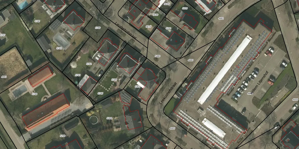 Leumehofstraat 1 is gelegen op kadastraal perceel WEE01N5303. Deze kadastrale aanduiding is uniek en wordt gebruikt door het Kadaster om eigendomsrechten en andere zakelijke rechten vast te leggen. Het perceel maakt onderdeel uit van de kadastrale gemeente Weert.
