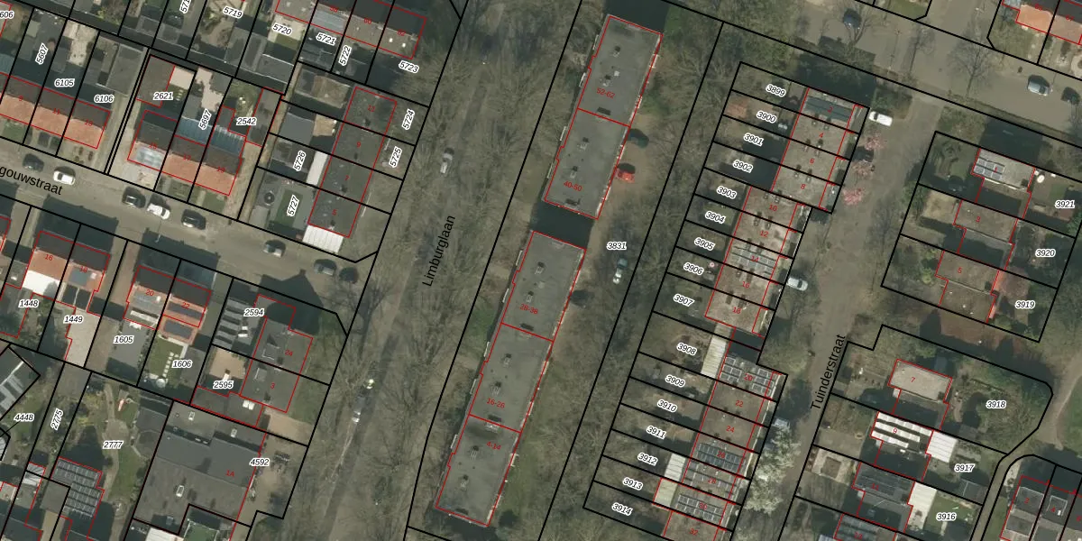 Het perceel waarop Limburglaan 30 staat heeft een oppervlakte van 2785 m². Dit is een zeer groot perceel. De perceeloppervlakte wordt geregistreerd door het Kadaster. Gedetailleerde informatie over de maten van dit perceel kunt u vinden in het rapport Kadastrale kaart met maatvoering van Limburglaan 30.
