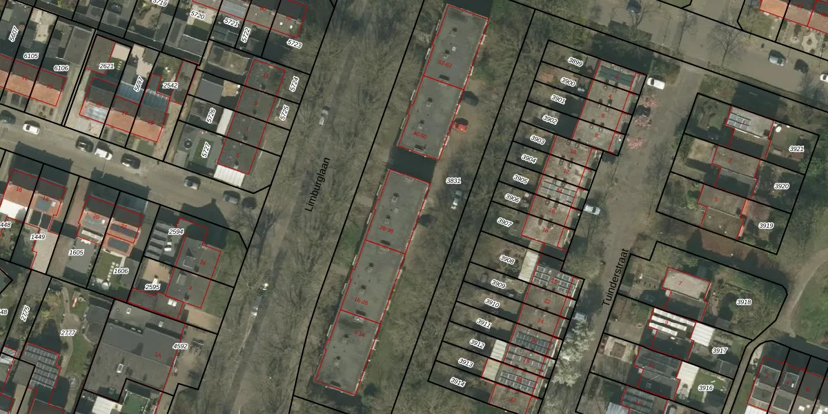 Het perceel waarop Limburglaan 34 staat heeft een oppervlakte van 2785 m². Dit is een zeer groot perceel. De perceeloppervlakte wordt geregistreerd door het Kadaster. Gedetailleerde informatie over de maten van dit perceel kunt u vinden in het rapport Kadastrale kaart met maatvoering van Limburglaan 34.