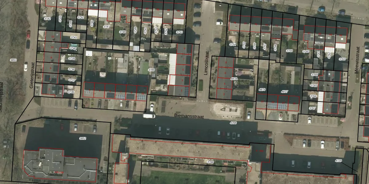 Het perceel waarop Limcostraat 1 staat heeft een oppervlakte van 1937 m². Dit is een zeer groot perceel. De perceeloppervlakte wordt geregistreerd door het Kadaster. Gedetailleerde informatie over de maten van dit perceel kunt u vinden in het rapport Kadastrale kaart met maatvoering van Limcostraat 1.