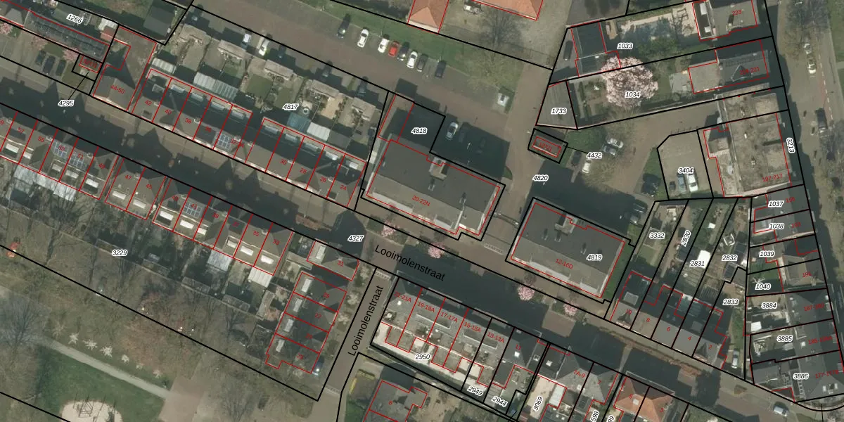 Het perceel waarop Looimolenstraat 22-B staat heeft een oppervlakte van 645 m². Dit is een groot perceel. De perceeloppervlakte wordt geregistreerd door het Kadaster. Gedetailleerde informatie over de maten van dit perceel kunt u vinden in het rapport Kadastrale kaart met maatvoering van Looimolenstraat 22-B.