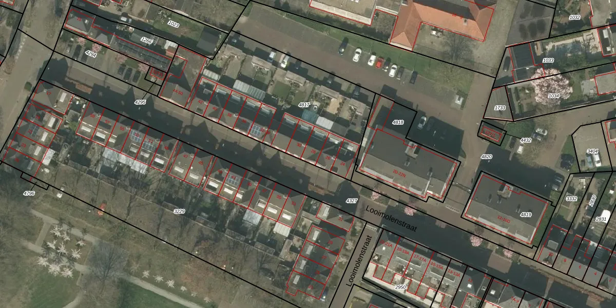 Het perceel waarop Looimolenstraat 28 staat heeft een oppervlakte van 1790 m². Dit is een zeer groot perceel. De perceeloppervlakte wordt geregistreerd door het Kadaster. Gedetailleerde informatie over de maten van dit perceel kunt u vinden in het rapport Kadastrale kaart met maatvoering van Looimolenstraat 28.