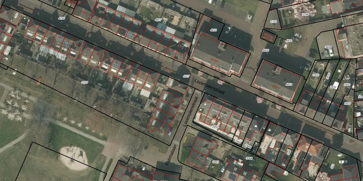 Het perceel waarop Looimolenstraat 31 staat heeft een oppervlakte van 3720 m². Dit is een zeer groot perceel. De perceeloppervlakte wordt geregistreerd door het Kadaster. Gedetailleerde informatie over de maten van dit perceel kunt u vinden in het rapport Kadastrale kaart met maatvoering van Looimolenstraat 31.