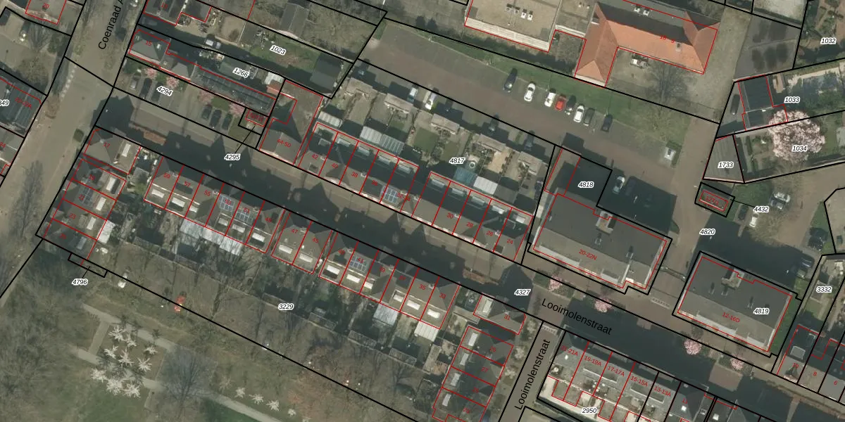 Looimolenstraat 32 is gelegen op kadastraal perceel WEE01R4817. Deze kadastrale aanduiding is uniek en wordt gebruikt door het Kadaster om eigendomsrechten en andere zakelijke rechten vast te leggen. Het perceel maakt onderdeel uit van de kadastrale gemeente Weert.