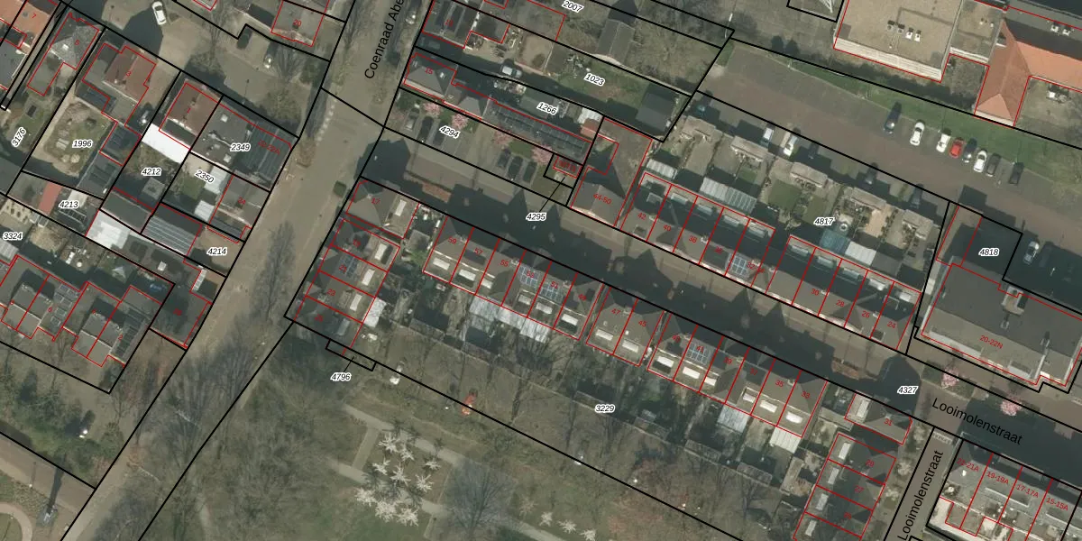 Het perceel waarop Looimolenstraat 53 staat heeft een oppervlakte van 3720 m². Dit is een zeer groot perceel. De perceeloppervlakte wordt geregistreerd door het Kadaster. Gedetailleerde informatie over de maten van dit perceel kunt u vinden in het rapport Kadastrale kaart met maatvoering van Looimolenstraat 53.