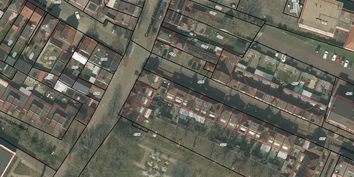 Het perceel waarop Looimolenstraat 59 staat heeft een oppervlakte van 3720 m². Dit is een zeer groot perceel. De perceeloppervlakte wordt geregistreerd door het Kadaster. Gedetailleerde informatie over de maten van dit perceel kunt u vinden in het rapport Kadastrale kaart met maatvoering van Looimolenstraat 59.