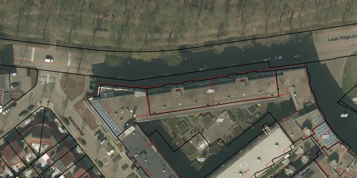 Het perceel waarop Louis Regoutstraat 45 staat heeft een oppervlakte van 1100 m². Dit is een zeer groot perceel. De perceeloppervlakte wordt geregistreerd door het Kadaster. Gedetailleerde informatie over de maten van dit perceel kunt u vinden in het rapport Kadastrale kaart met maatvoering van Louis Regoutstraat 45.