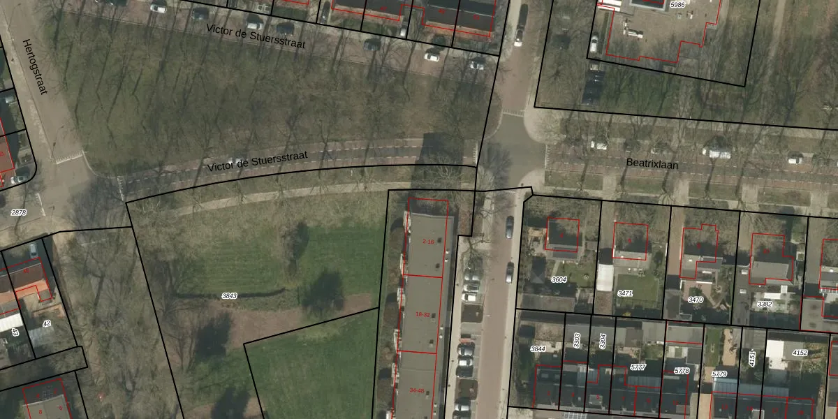 Het perceel waarop Louise de Colignystraat 4 staat heeft een oppervlakte van 4188 m². Dit is een zeer groot perceel. De perceeloppervlakte wordt geregistreerd door het Kadaster. Gedetailleerde informatie over de maten van dit perceel kunt u vinden in het rapport Kadastrale kaart met maatvoering van Louise de Colignystraat 4.