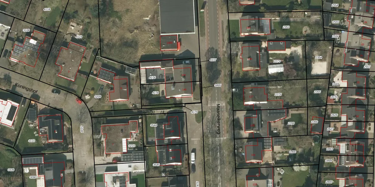 Het perceel waarop Maaseikerweg 146 staat heeft een oppervlakte van 365 m². Dit is een groot perceel. De perceeloppervlakte wordt geregistreerd door het Kadaster. Gedetailleerde informatie over de maten van dit perceel kunt u vinden in het rapport Kadastrale kaart met maatvoering van Maaseikerweg 146.