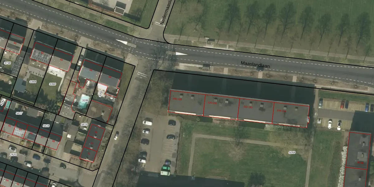 Maaslandlaan 108 is gelegen op kadastraal perceel WEE01S5058. Deze kadastrale aanduiding is uniek en wordt gebruikt door het Kadaster om eigendomsrechten en andere zakelijke rechten vast te leggen. Het perceel maakt onderdeel uit van de kadastrale gemeente Weert.