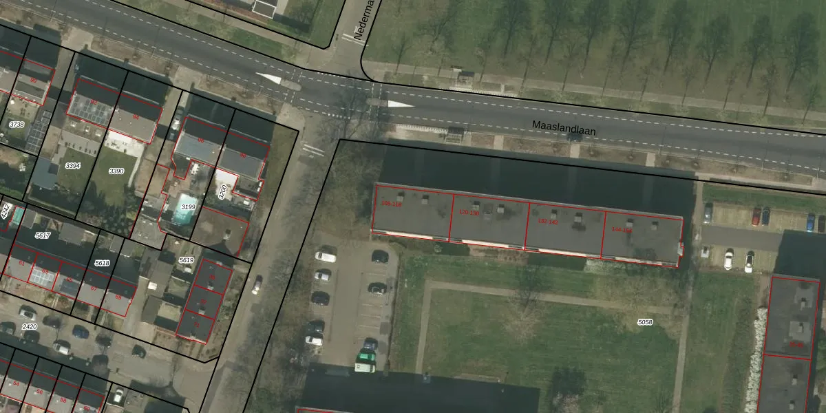 Maaslandlaan 110 is gelegen op kadastraal perceel WEE01S5058. Deze kadastrale aanduiding is uniek en wordt gebruikt door het Kadaster om eigendomsrechten en andere zakelijke rechten vast te leggen. Het perceel maakt onderdeel uit van de kadastrale gemeente Weert.