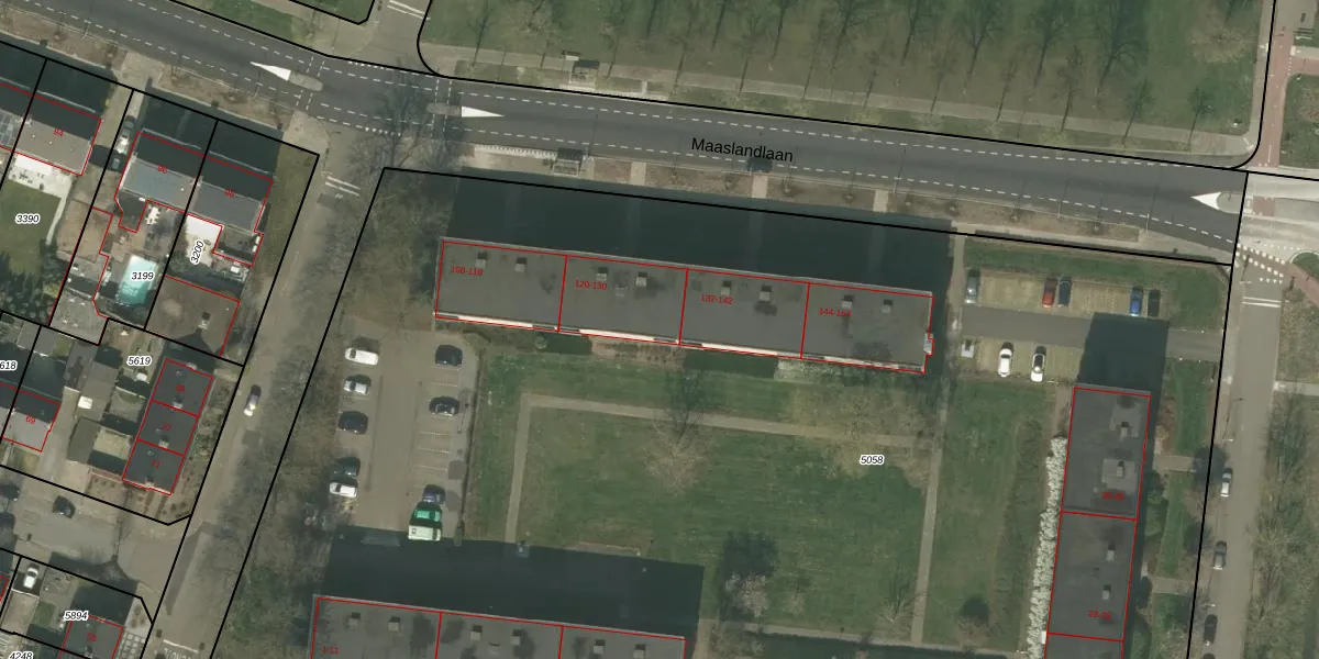Maaslandlaan 126 is gelegen op kadastraal perceel WEE01S5058. Deze kadastrale aanduiding is uniek en wordt gebruikt door het Kadaster om eigendomsrechten en andere zakelijke rechten vast te leggen. Het perceel maakt onderdeel uit van de kadastrale gemeente Weert.
