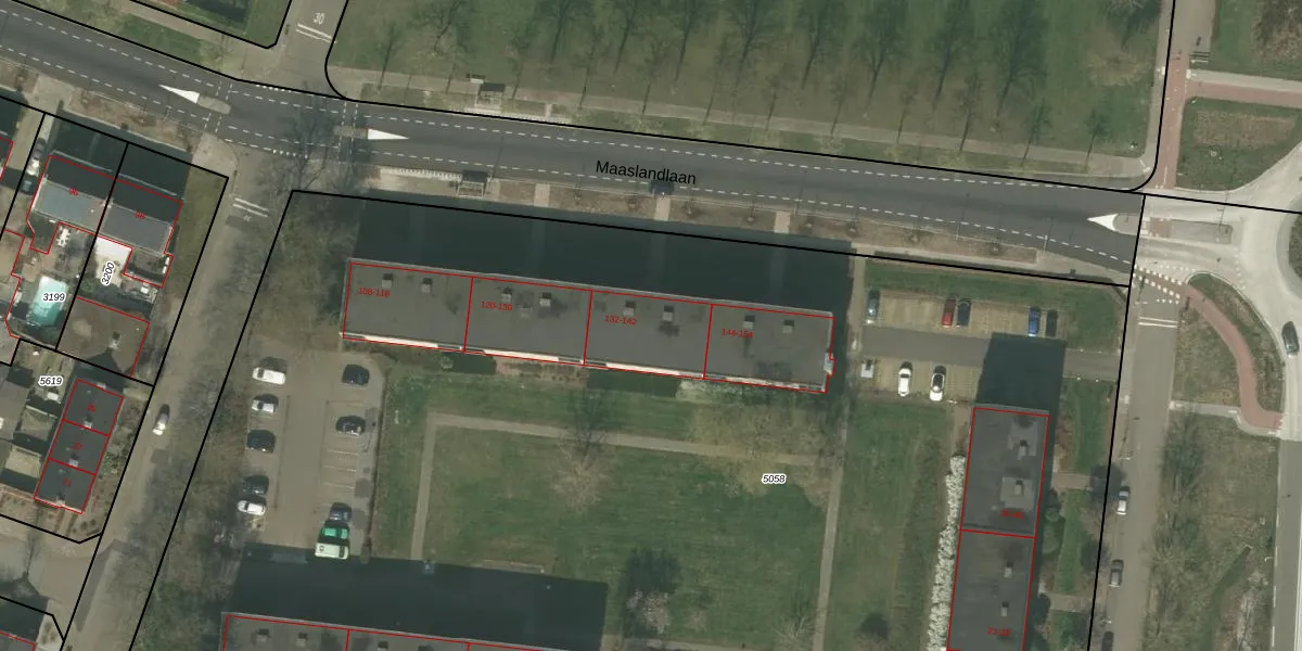 Maaslandlaan 134 is gelegen op kadastraal perceel WEE01S5058. Deze kadastrale aanduiding is uniek en wordt gebruikt door het Kadaster om eigendomsrechten en andere zakelijke rechten vast te leggen. Het perceel maakt onderdeel uit van de kadastrale gemeente Weert.