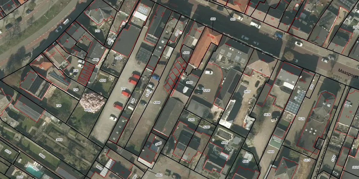 Het perceel waarop Maaspoort 16-E staat heeft een oppervlakte van 475 m². Dit is een groot perceel. De perceeloppervlakte wordt geregistreerd door het Kadaster. Gedetailleerde informatie over de maten van dit perceel kunt u vinden in het rapport Kadastrale kaart met maatvoering van Maaspoort 16-E.