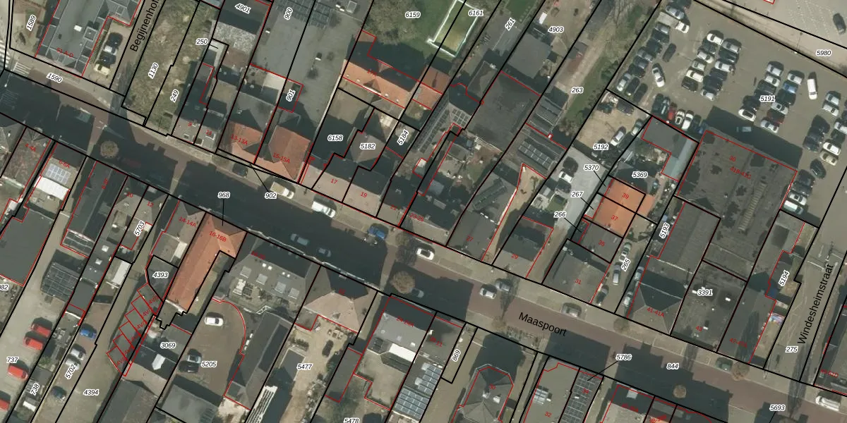 Maaspoort 23-A is gelegen op kadastraal perceel WEE01S4903. Deze kadastrale aanduiding is uniek en wordt gebruikt door het Kadaster om eigendomsrechten en andere zakelijke rechten vast te leggen. Het perceel maakt onderdeel uit van de kadastrale gemeente Weert.