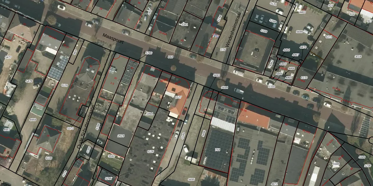 Maaspoort 44 is gelegen op kadastraal perceel WEE01S6127. Deze kadastrale aanduiding is uniek en wordt gebruikt door het Kadaster om eigendomsrechten en andere zakelijke rechten vast te leggen. Het perceel maakt onderdeel uit van de kadastrale gemeente Weert.