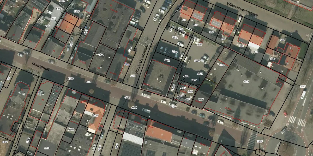 Het perceel waarop Maaspoort 51-C staat heeft een oppervlakte van 443 m². Dit is een groot perceel. De perceeloppervlakte wordt geregistreerd door het Kadaster. Gedetailleerde informatie over de maten van dit perceel kunt u vinden in het rapport Kadastrale kaart met maatvoering van Maaspoort 51-C.