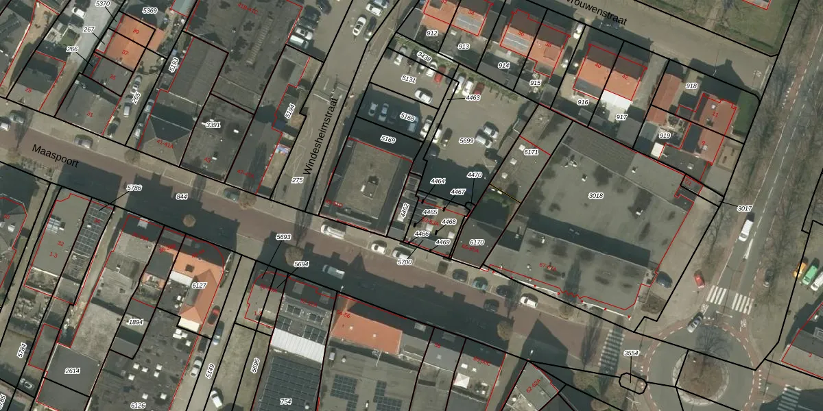Het perceel waarop Maaspoort 59 staat heeft een oppervlakte van 70 m². Dit is een klein perceel. De perceeloppervlakte wordt geregistreerd door het Kadaster. Gedetailleerde informatie over de maten van dit perceel kunt u vinden in het rapport Kadastrale kaart met maatvoering van Maaspoort 59.