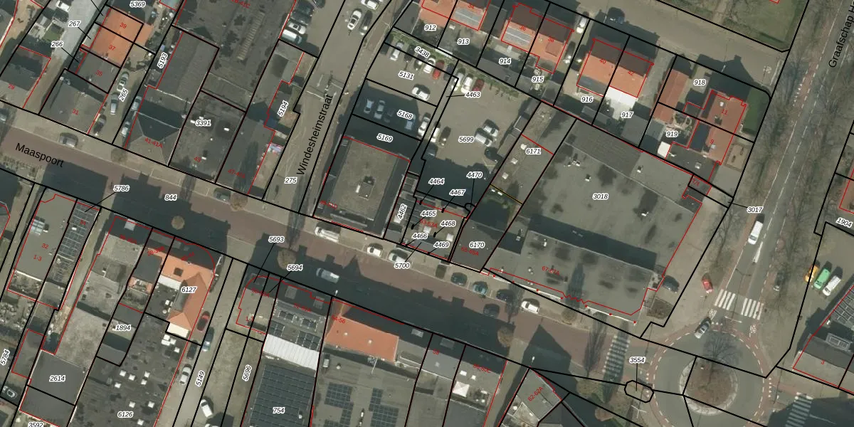 Maaspoort 61 is gelegen op kadastraal perceel WEE01S5700. Deze kadastrale aanduiding is uniek en wordt gebruikt door het Kadaster om eigendomsrechten en andere zakelijke rechten vast te leggen. Het perceel maakt onderdeel uit van de kadastrale gemeente Weert.
