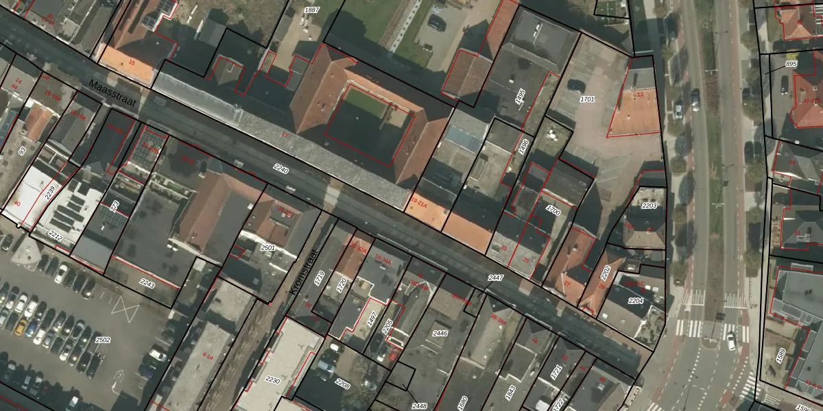Maasstraat 19 is gelegen op kadastraal perceel WEE01O1495. Deze kadastrale aanduiding is uniek en wordt gebruikt door het Kadaster om eigendomsrechten en andere zakelijke rechten vast te leggen. Het perceel maakt onderdeel uit van de kadastrale gemeente Weert.